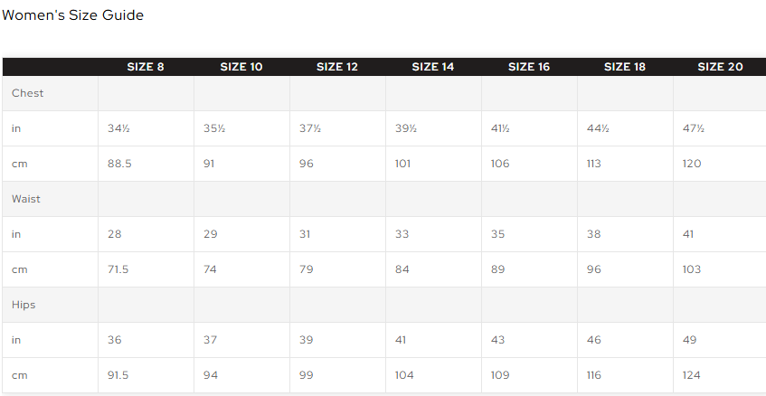 These measurements are based on a size 12 and will vary slightly between sizes.