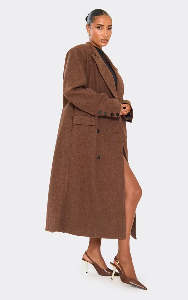 Oversized Textured Wool Look Maxi Coat In Chocolate Brown